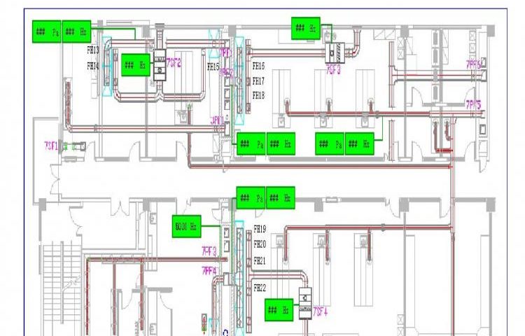 遠程監(jiān)控排風機狀態(tài),設定并顯示管道靜壓值,顯示風機運行頻率,過濾器堵塞報警